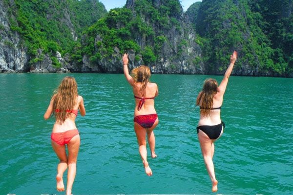 13.00: Anchor at a very calm lagoon nearby Ha Long city to have lunch (We don’t go to the city). After lunch, grab a drink, playing photographer or enjoying top-boat jumping.