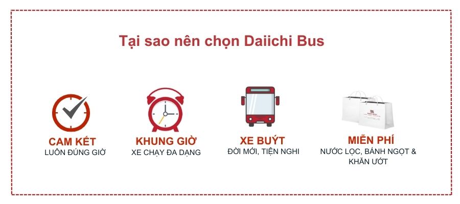 | Phương tiện | Xe ghế ngồi + Xe giường nằm Daiichi | |